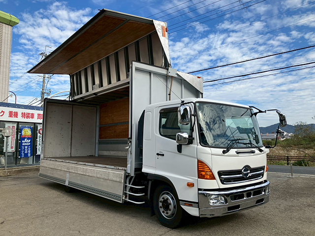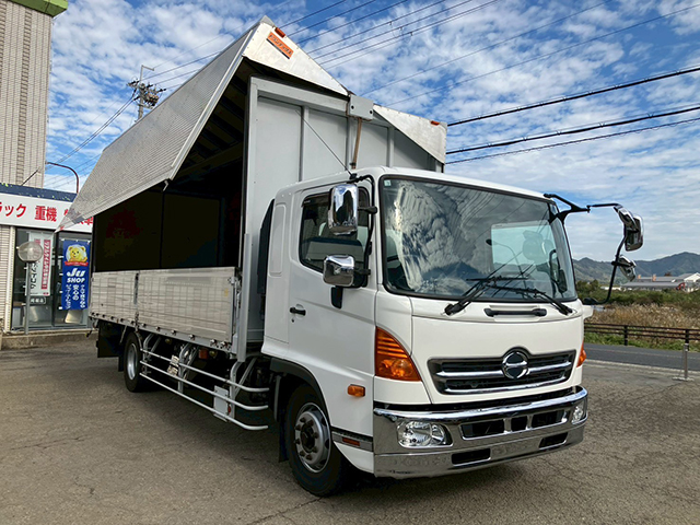 H26 レンジャーアルミウィング! ◾️6MT ◾️3ペタル ◾️後輪エアサス ◾️6.9t積載 ◾️トランテックス ◾️L6370mm W2400mm H2410mm ◾️ラッシング・2段 ◾️引出し内フック6対 ◾️バックモニター ※コーポレートカラーにつきキャビン日野ホワイトに全塗装済 サビ 小キス等有り現車確認お願い致します。
